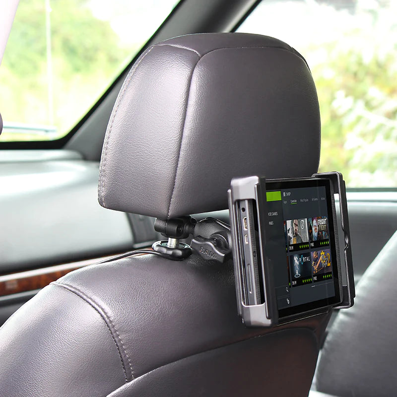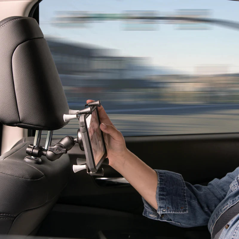 The RAM-B-408-37-62U allows for mounting to scooter mirror rails as well as vehicle headrests and other round rails within the stated dimensions.
