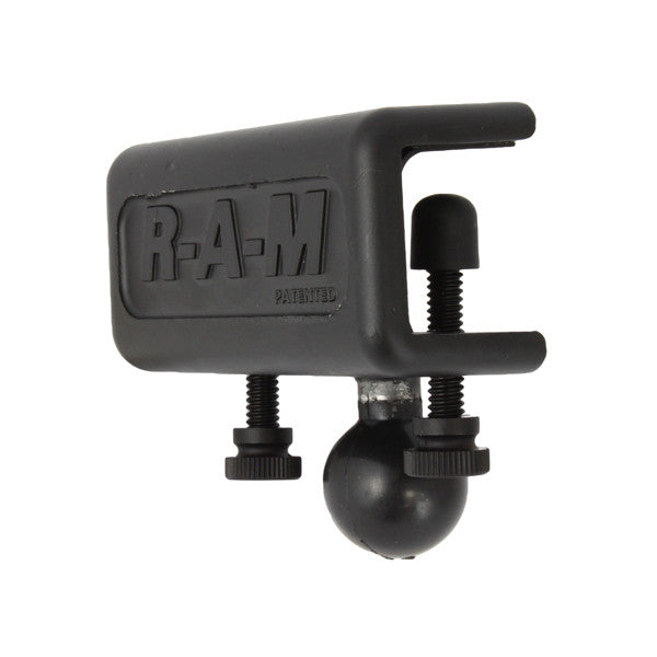The RAM-B-259U is designed to mount to the lip edge of a flat surface up to 5/8" thick. Popular mounting edges include a car side window edge lip or glare shield on an airplane. The base has two composite bolts that when tightened clamp the base to the lip surface. A RAM 1" diameter rubber ball is connected to the base allowing you to connect a RAM 1" diameter arm socket and connection plates to create the perfect mount for your application.