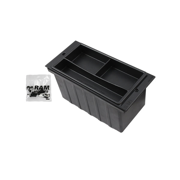 The RAM-FP4-AP accessory pocket consists a high strength composite box (4" height) low profile accessory tray and two button head allen drive screws.