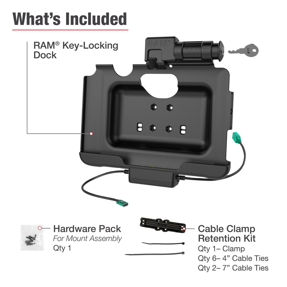 - 1 x RAM® Key-Locking Power + Data Dock for Tab Active4 Pro & Tab Active Pro (RAM-HOL-SAM57CPKL-1AU)