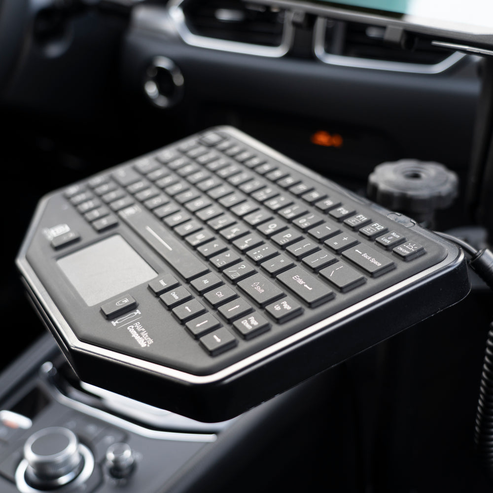 With the GDS® Tech™ rugged keyboard with USB cable and built-in mouse trackpad, complete your in-vehicle mobile office setup. This keyboard features VESA and AMPS hole patterns, making it compatible with a wide variety of RAM® mounting solutions. Easily secure the keyboard with either the RAM® Tab-Tite™ dock or RAM® Tab-Lock™ dock, and then quickly remove the keyboard for use on your lap or centre console.