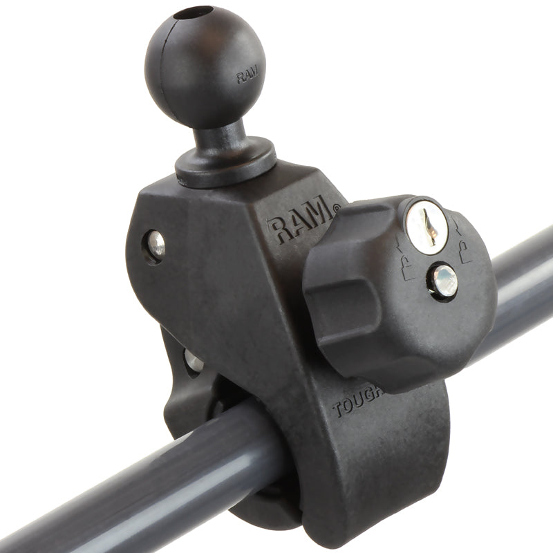 The RAM Locking Tough-Claw™ is the perfect mounting base for quick and easy installation and removal on round, square, odd shaped rails and bars. The Tough-Claw™ can be clamped on rails from insert clamping range here in outer diameter. Ideal for mounting tablets, action cameras, smartphones, rod holders and much more in virtually any environment, the Tough-Claw™ is a versatile solution for when a bit more grip is required. The 1.5” ball supports larger devices and offers greater mounting flexibility. Perfectly suited for mounting on the yoke of an aircraft, handlebars and seat posts of bicycles, kayak rails, roll bars and much more, the RAM® Tough-Claw™ will soon become another essential RAM® component in your collection of mounting options. The locking knob includes a 1/4”-20 thread and allows you to disengage the screwing of the knob. Once you have set your Tough-Claw™ in the location you need, you can lock it in place for peace of mind and tamper resistance.